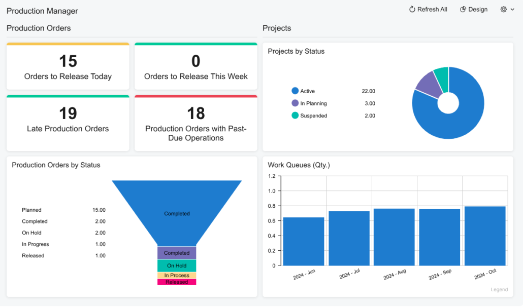 In manufacturing, decisions must be made quickly and confidently. A robust ERP solution provides a single source of truth, pulling data from across your entire operation, from the production line to the finance department, into unified, easy-to-read dashboards. This allows you to monitor key performance indicators (KPIs), identify bottlenecks, and make informed, data-driven decisions without delay.